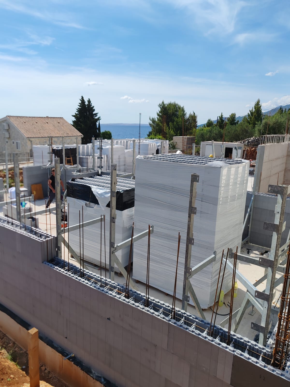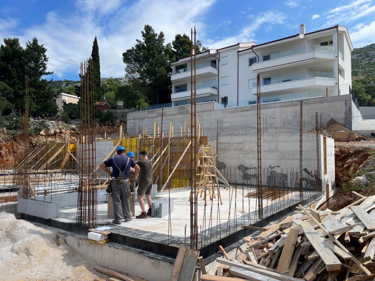 Na hrvaški obali se je začela gradnja apartmajskega dvojčka moderne zasnove. Objekt je postavljen v strmem terenu, investitor pa se je odločil za uporabo sistemov JUBHome WALL in ROOF ter tudi za tehnično asistenco tako v projektni kot izvedbeni fazi na samem gradbišču. Del fasade bo obložen z naravnim kamnom s čimer se bo objekt oblikovno navezal na starejše hiše v neposredni bližini.