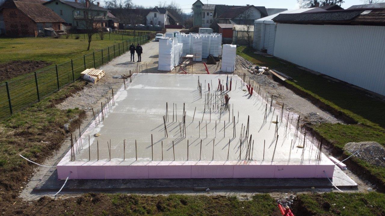 Gradbinec, ki naš sistem odlično pozna, je dela izvedel izjemno hitro – v samo sedmih dneh je dokončal izvedbo temeljne plošče ter postavitev obodnih in notranjih nosilnih sten prve etaže. Nadaljevanje del, vključno s postavitvijo sten nadstropja, bo steklo po izvedbi etažne plošče, predvidoma v zadnjem tednu marca. Več slik sledi v kratkem.