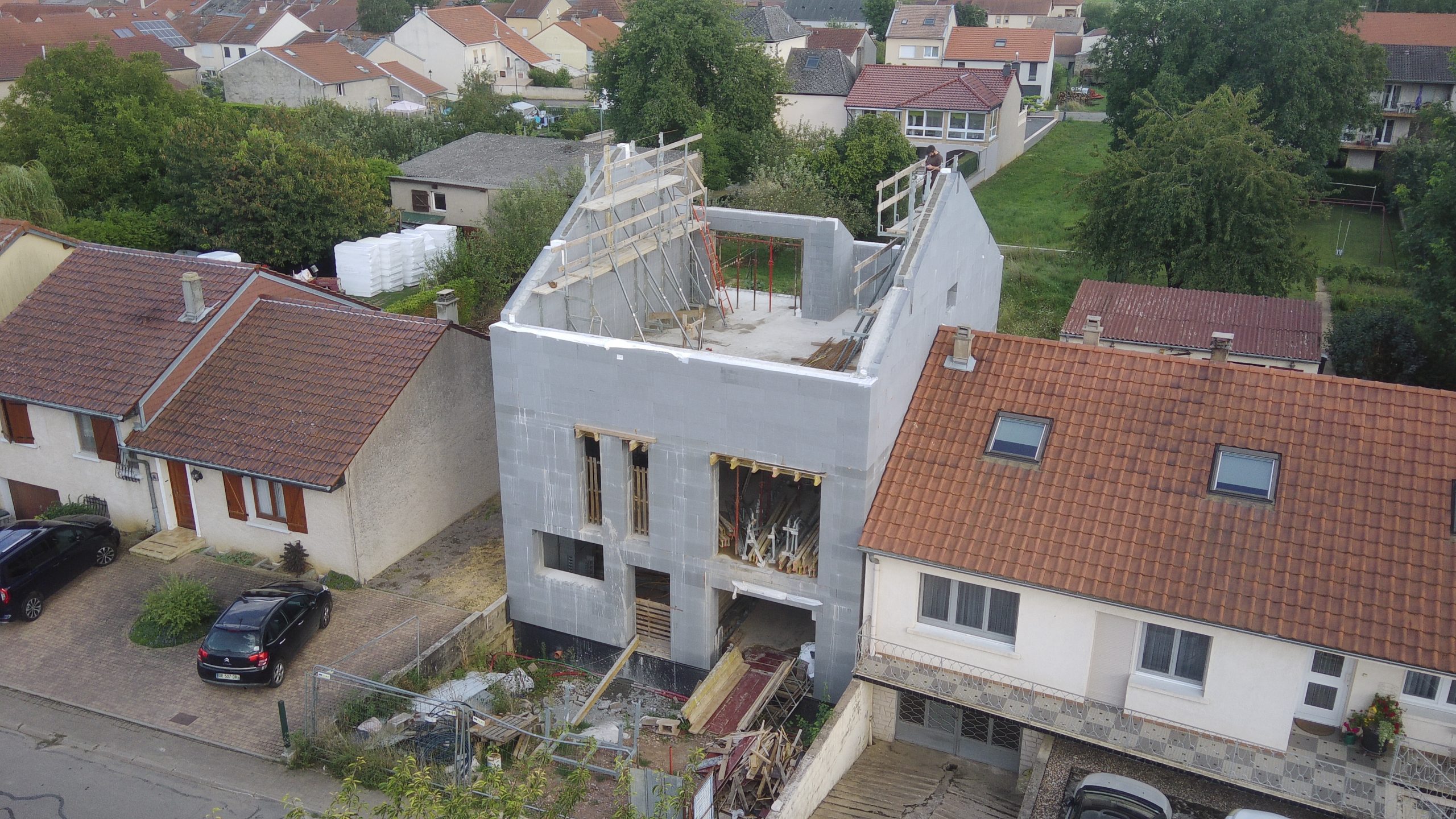 Na francosko luksemburški meji raste nova JUBHome hiša. Francoski samograditelj bo naše JUBHome WALL 465 elemente postavil na pasovne temelje in objekt na vrhu zaključil z leseno strešno konstrukcijo izolirano z JUBHome ROOF elementi.